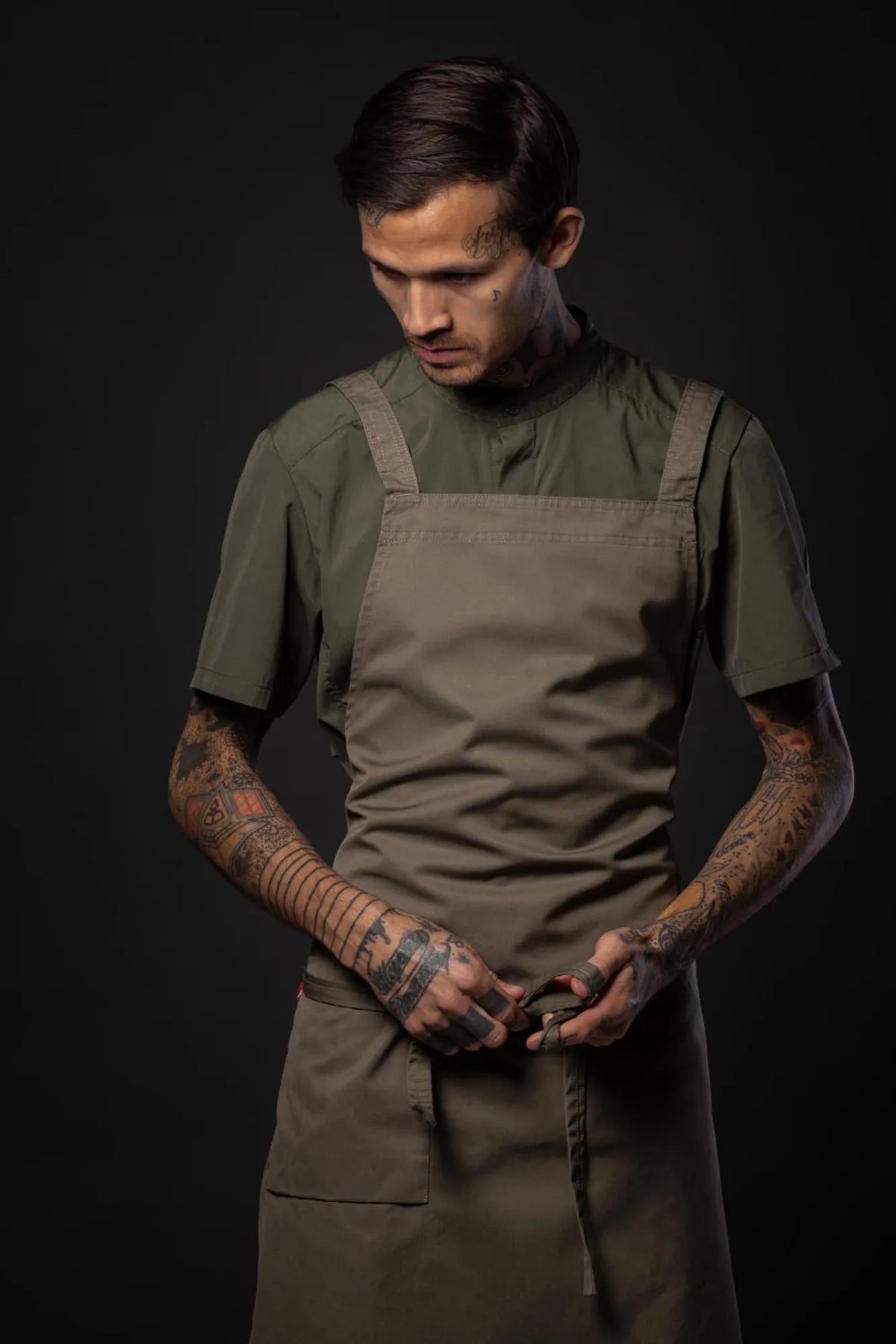 Bröstlappsförkläde med ergonomi i fokus tack vare kors i ryggen med reglerbara hängslen