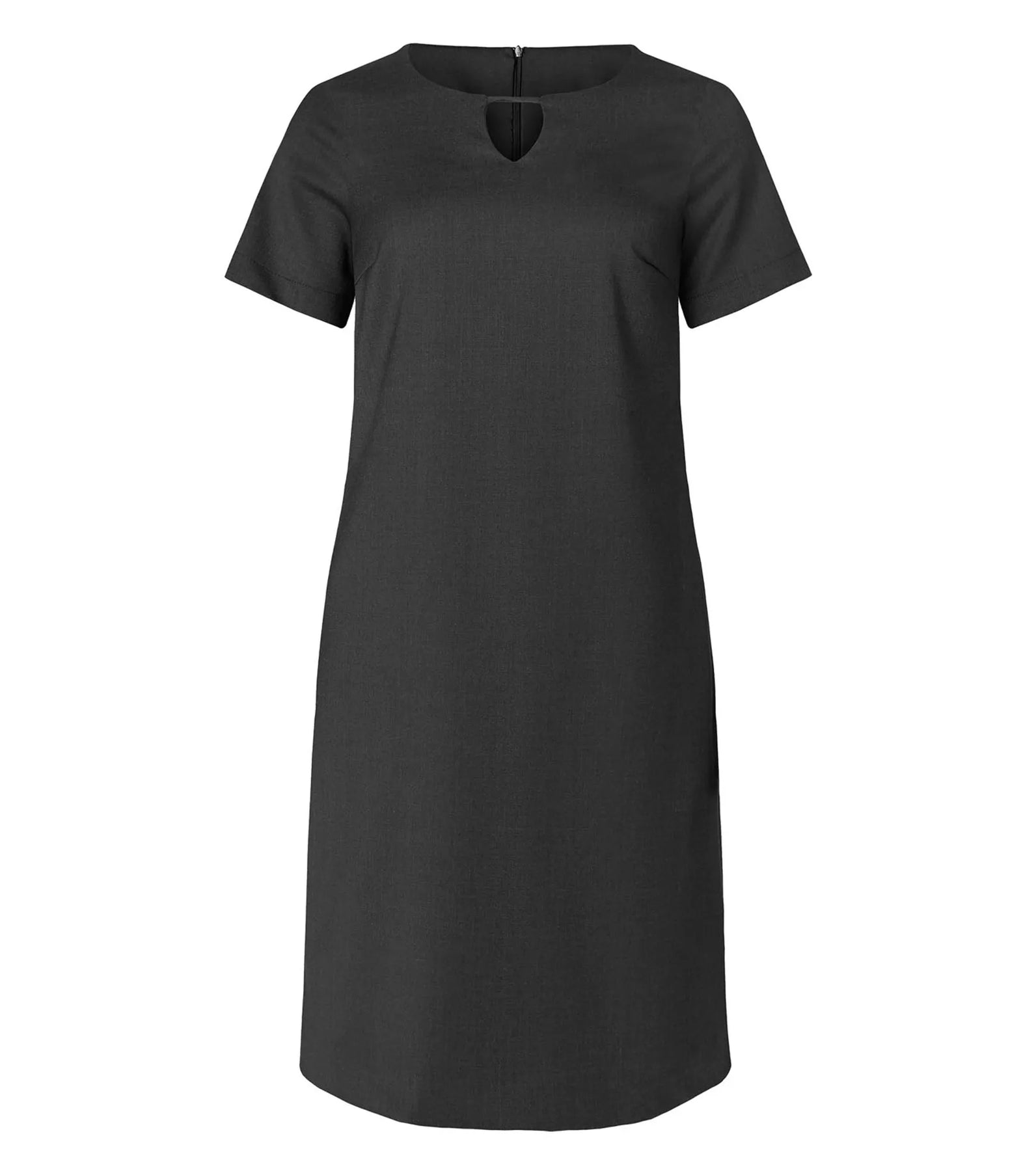 Klänning i rak modell med rundad hals och sidfickor
