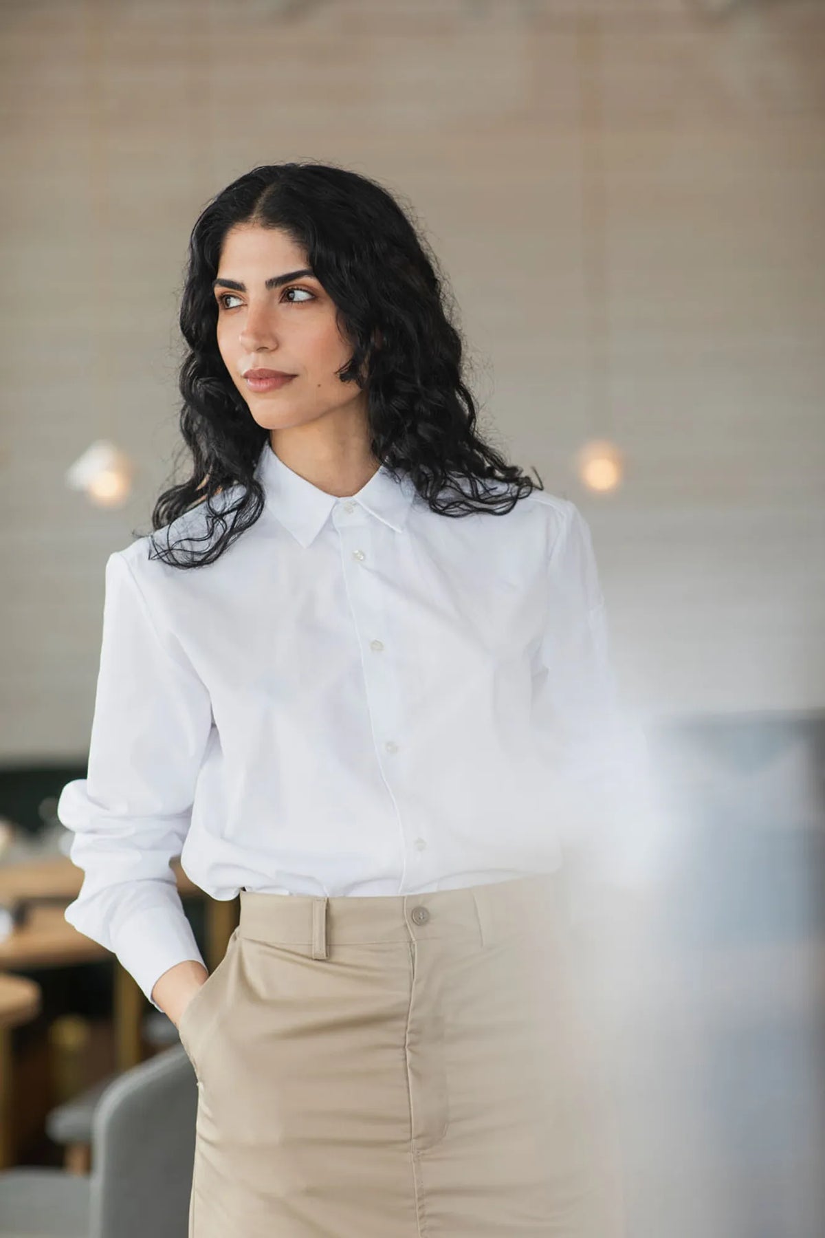 Serverings skjorta/Kockskjorta i unisexmodell med slitsar i sidorna för bättre passform. Pennficka på ärmen. Slitstarkt tunt tyg med stretch för en skön känsla och bekvämlighet.