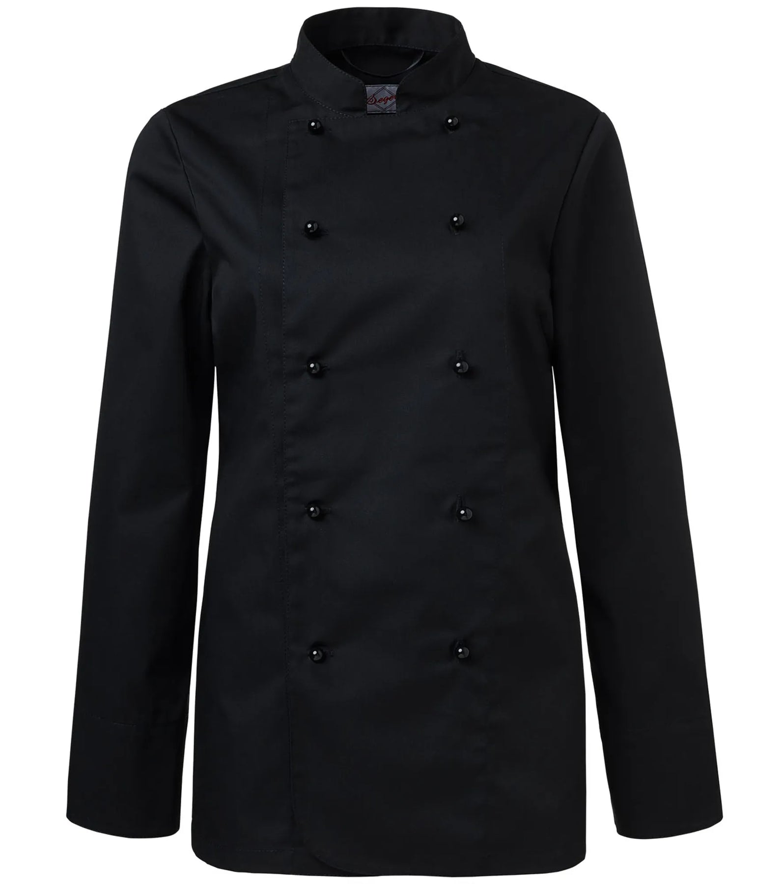 Klassieke koksbuis met lange mouw en iets smallere pasvorm voor dames