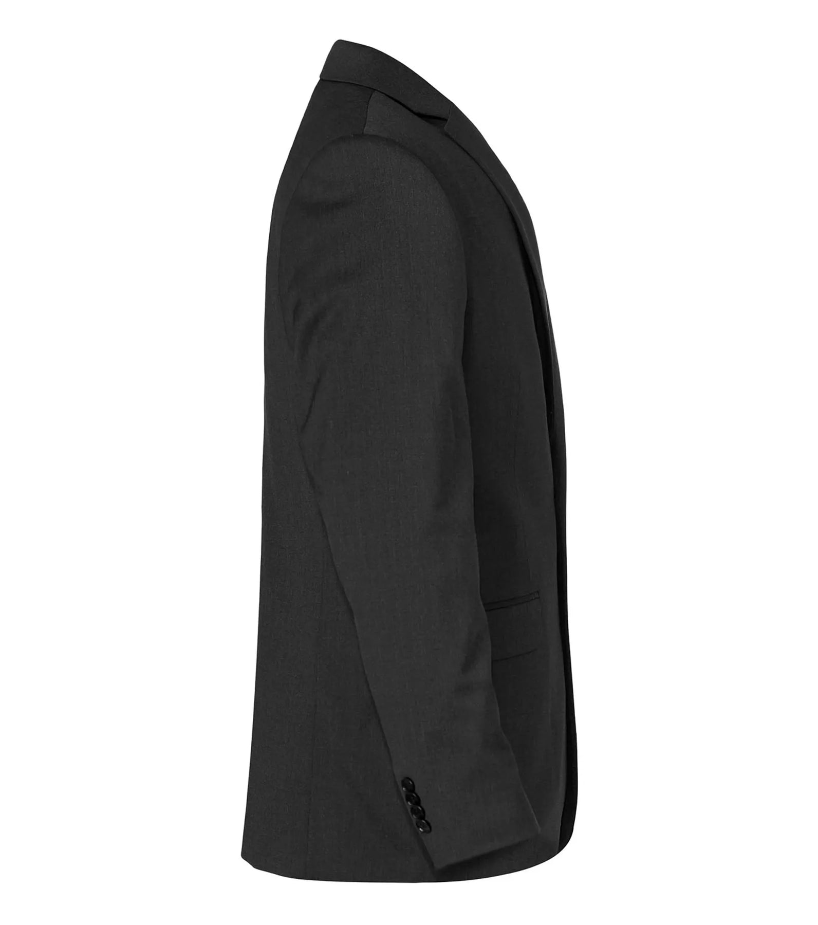 Herencolbert met kraag en revers. Knopen aan uiteinden mouwen en split aan de achterkant. Voor de maten C144-162 zijn de mouwen en lijf ca. 2 cm langer