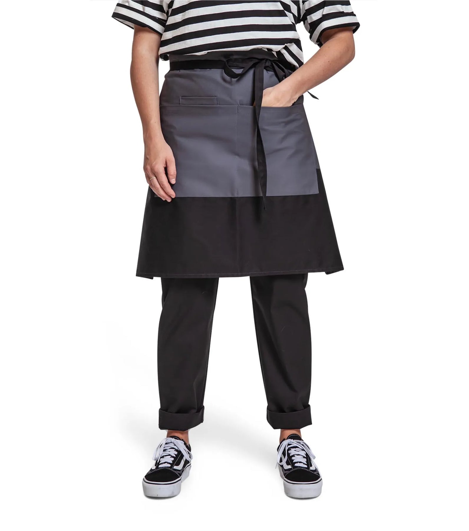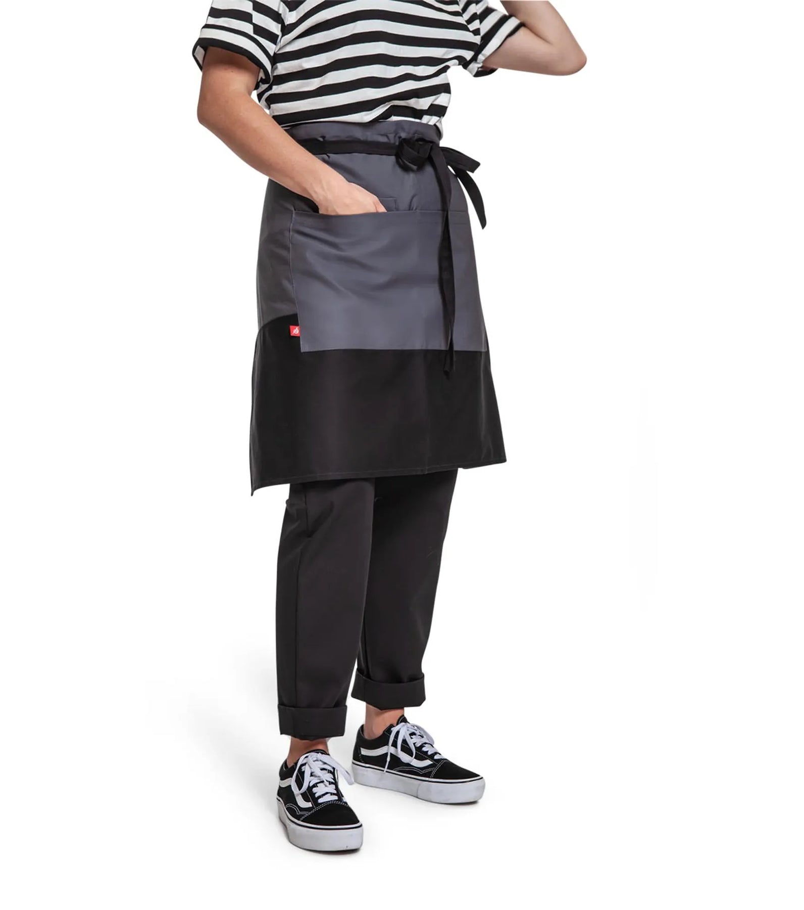 Sloof met tweekleurige patroon en ruime zakken.