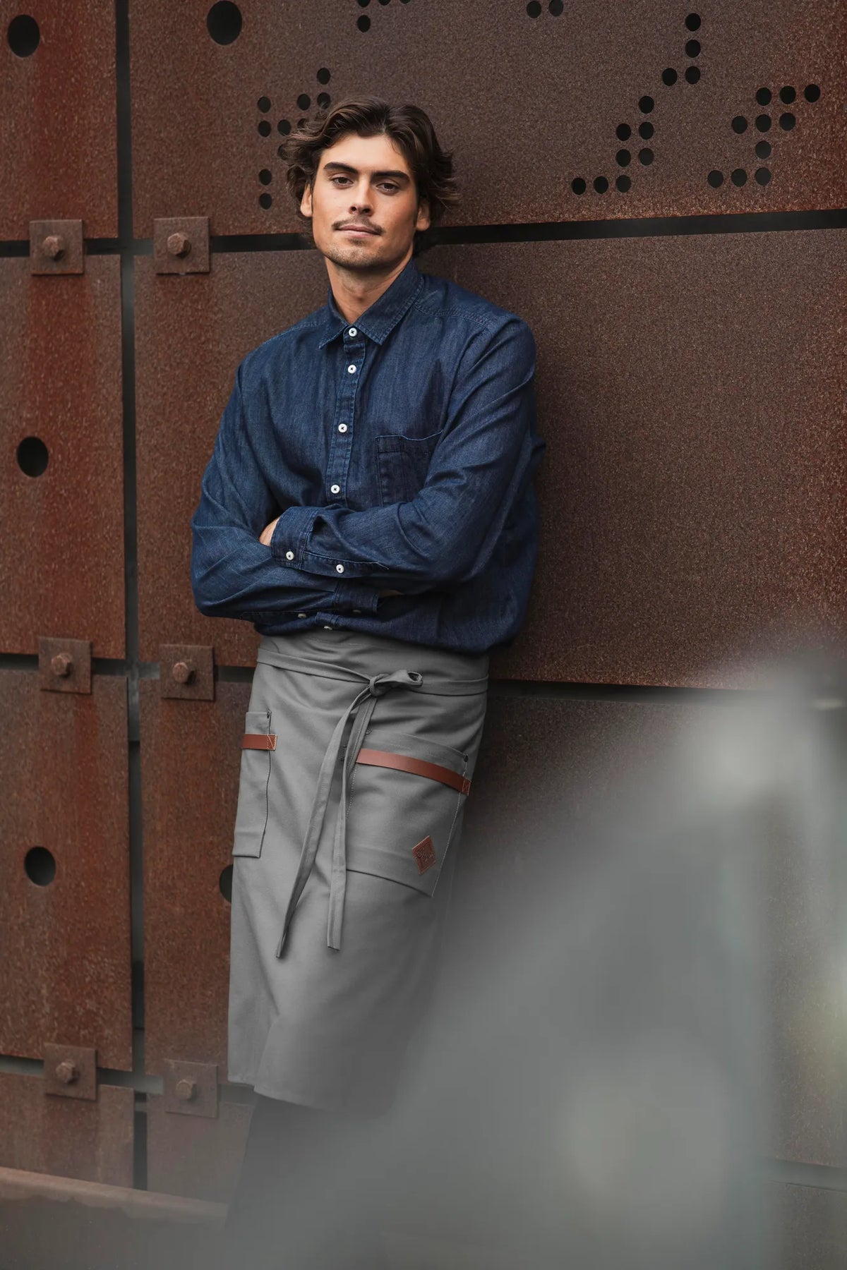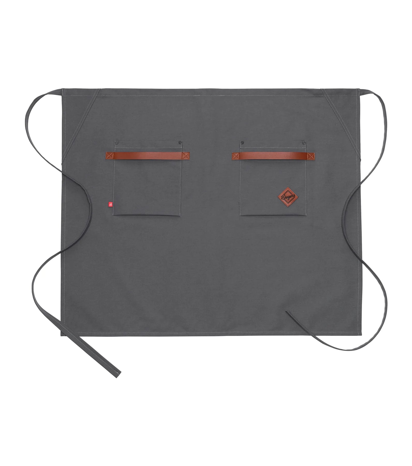 Stijlvol canvas schort met grote zakken en duurzame, afwasbare leren details.